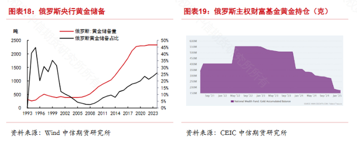 相比CBR的战略储备属性,NWF的黄金承担的是“财政流 动性最后兜底”功能,在国内融资受限、外汇收入下降以及制裁导致资金链紧张时被动变现。