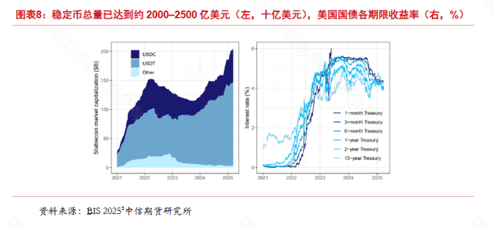 此外,储备重构推动央行长期锁定黄金,稳定币需求强化黄金的可重复使用性,两者形成“久期 差驱动”的循环。央行的购金行为基于储备体系安全性的长期考量,其配置久期极长,几乎不随价格 调整,形成供给中最稳定的锁定需求。