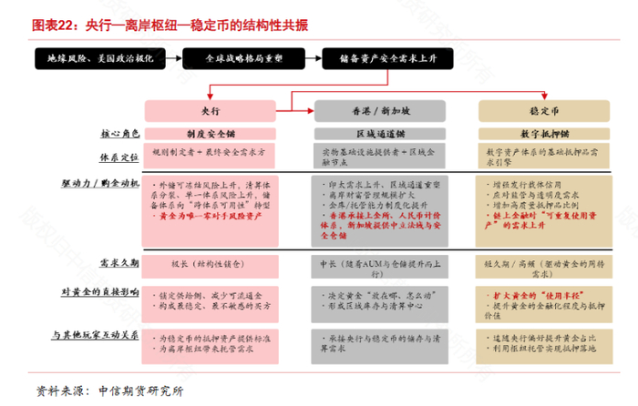 三者需求方向一致,强化黄金的制度属性与金融功能。