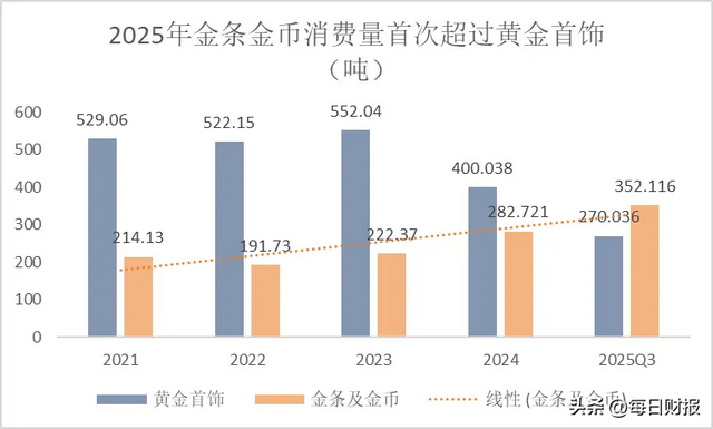 但是,黄金作为传统的避险资产,在资产荒大背景下吸引大量买盘,2025年前三季度,国内以金币、金条为主的投资性的黄金消费量为352.12吨,同比增长24.55%,是过去三十年来,国内黄金的投资性需求首次超过消费性需求。